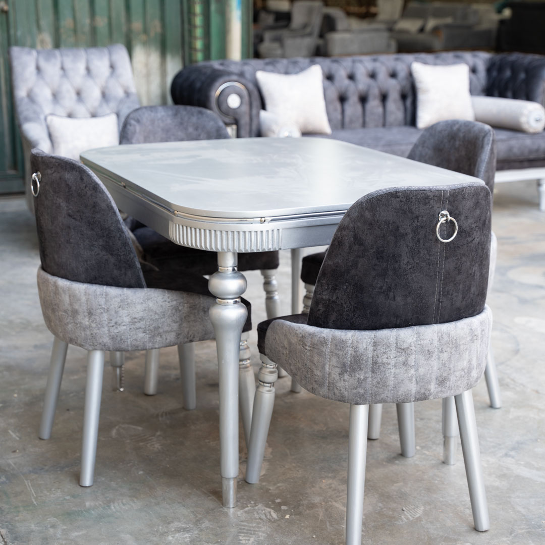 سرویس جهیزیه عروس کاوالی با مبل چستر، میز جلو مبلی و ناهارخوری