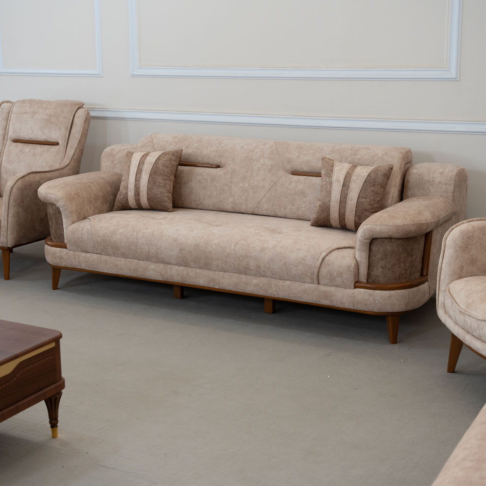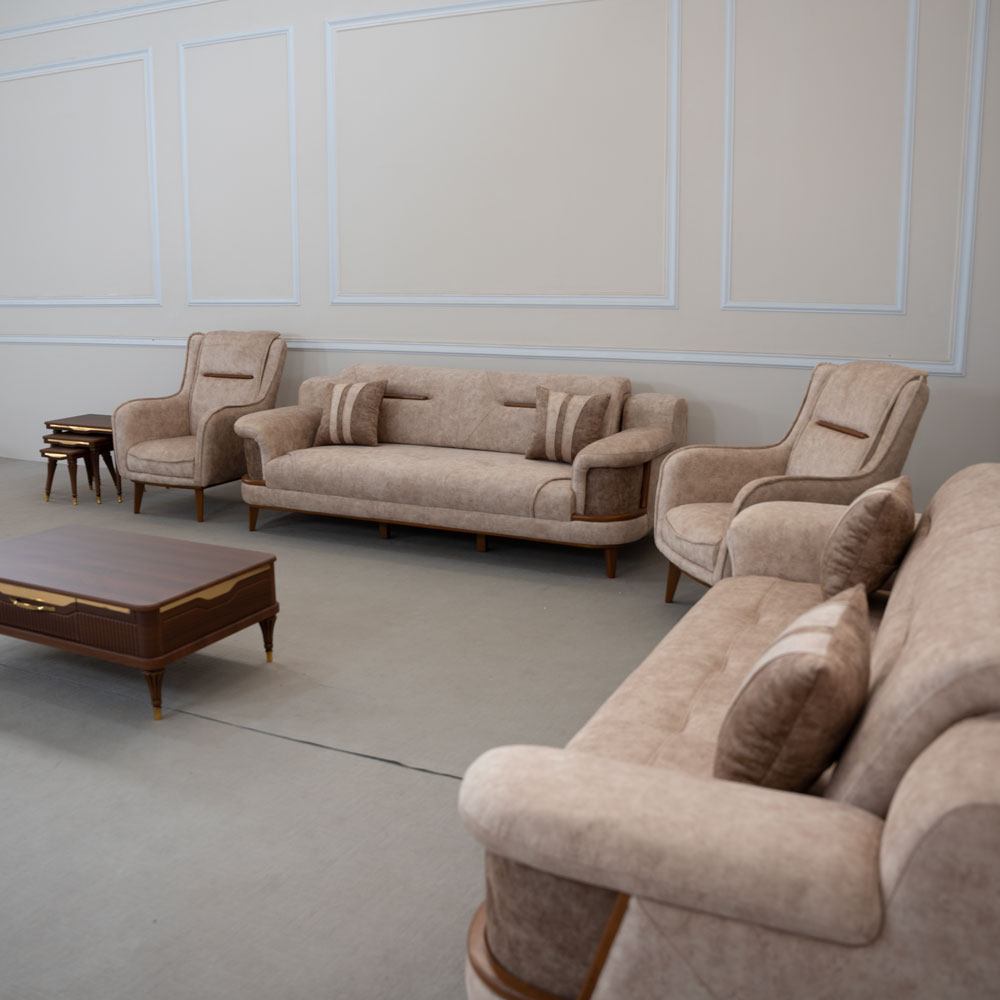سرویس جهیزیه عروس مدل لوتوس یک ست کامل شامل مبل راحتی ۸ نفره، جلو مبلی و ناهارخوری است که با استفاده از چوب نراد روسی، چوب راش و پارچه وارداتی درجه یک تولید شده است. این سرویس با ضمانت ۲ ساله، امکان خرید نقد و اقساط و ارسال سراسر ایران از تولیدی مبل مهراد قابل سفارش میباشد.
