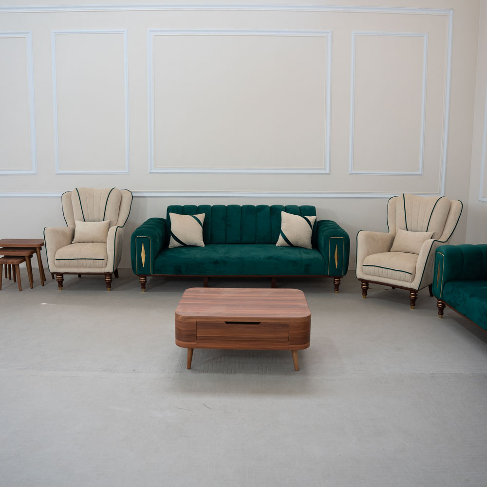 ✔ کاناپهها با رنگ سبز خاص اجرا شده