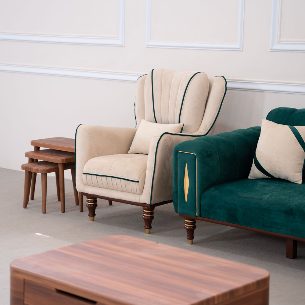 ✔ مبلهای تک نفره با رنگ کرم روشن طراحی شده